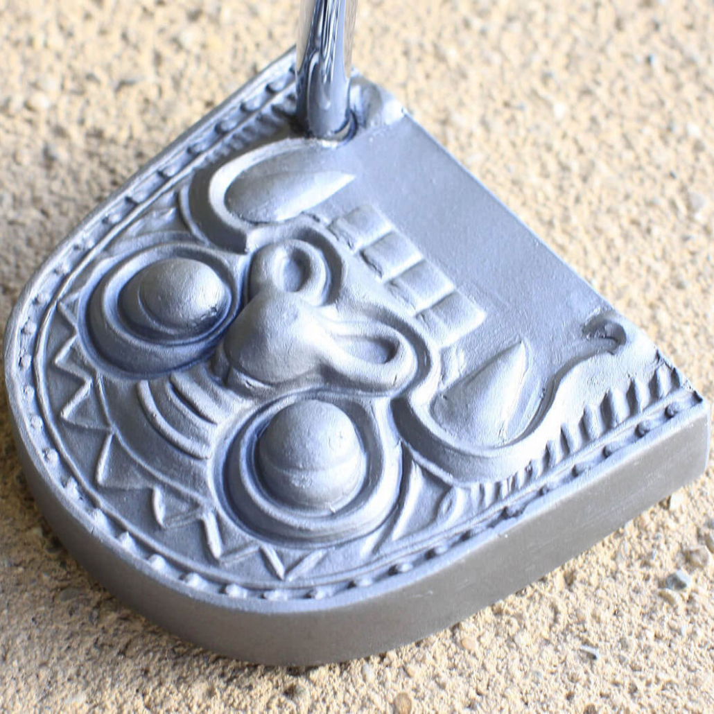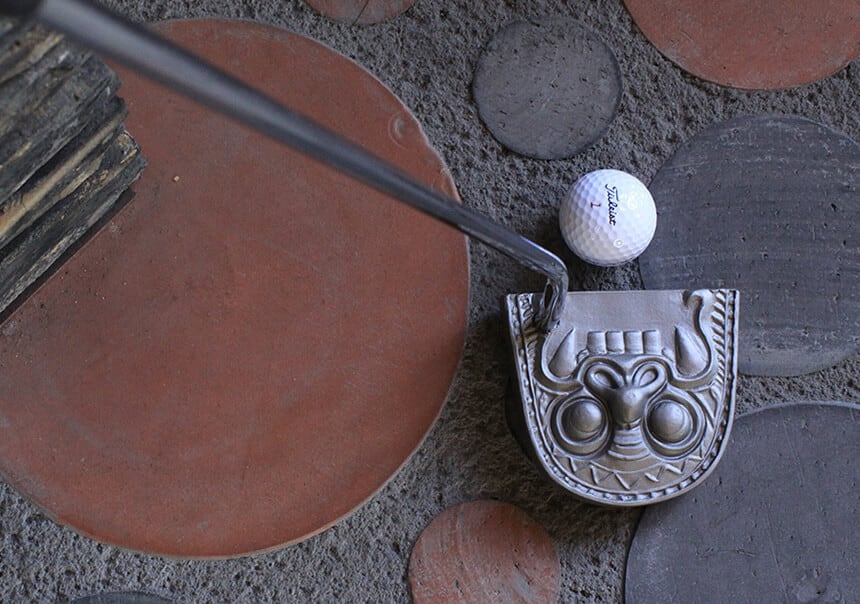 The Onigawara Putter is a rare golf putter that uses onigawara, a traditional Japanese craft, for the putter head.